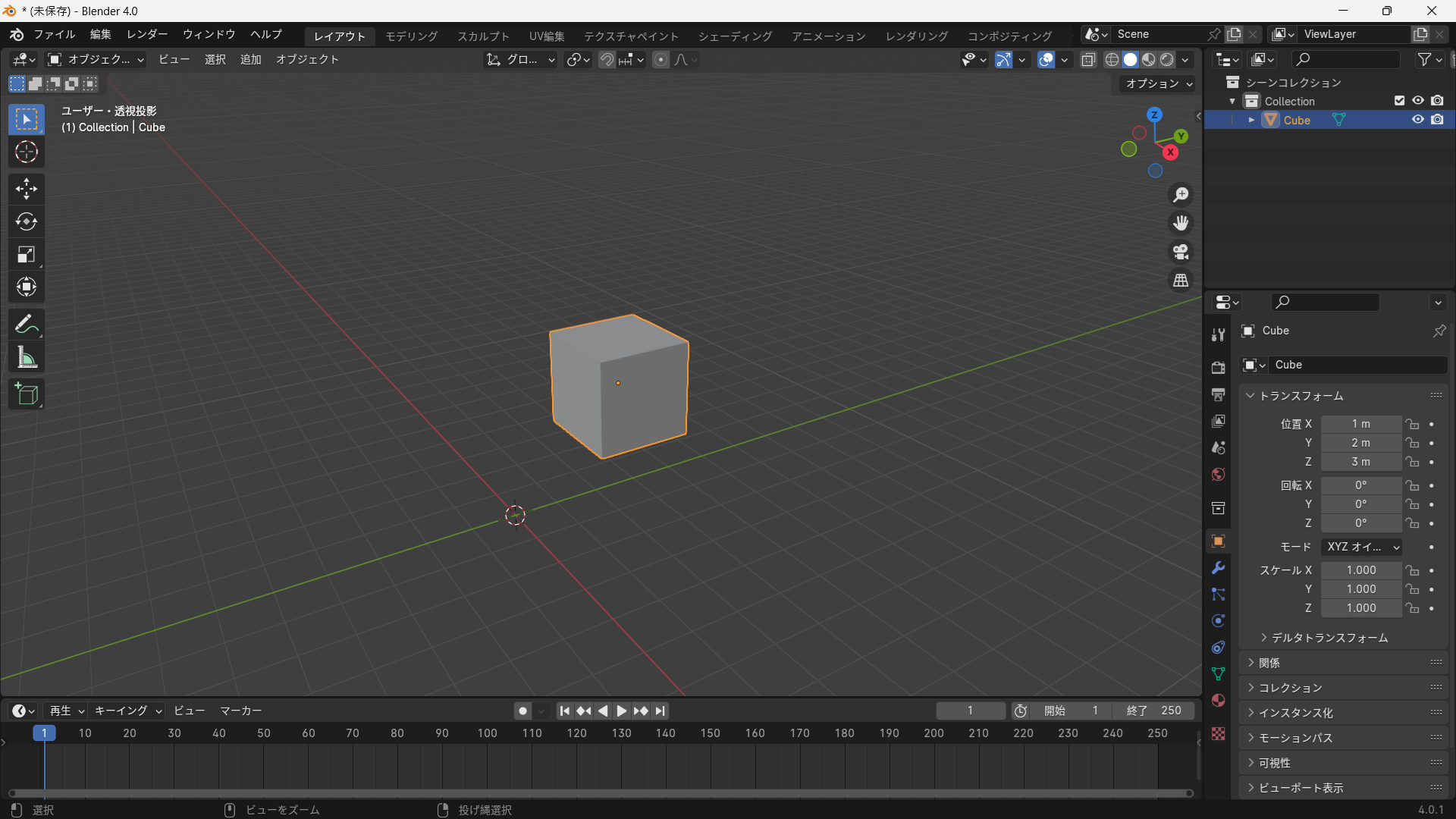- 回転の中心にしたいオブジェクト(例:立方体)を配置します。
