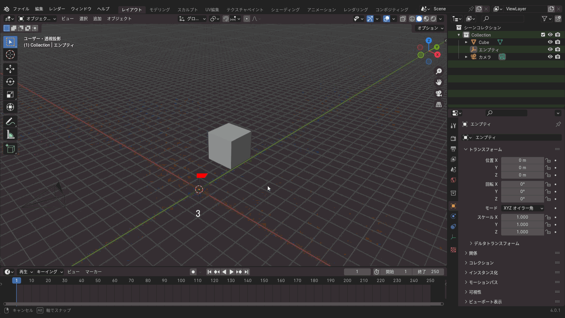今回は、エンプティ(Empty)を使ってカメラをオブジェクトの中心に回転させる方法を紹介します。