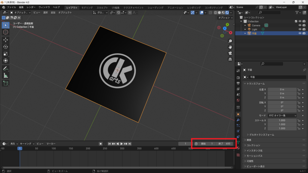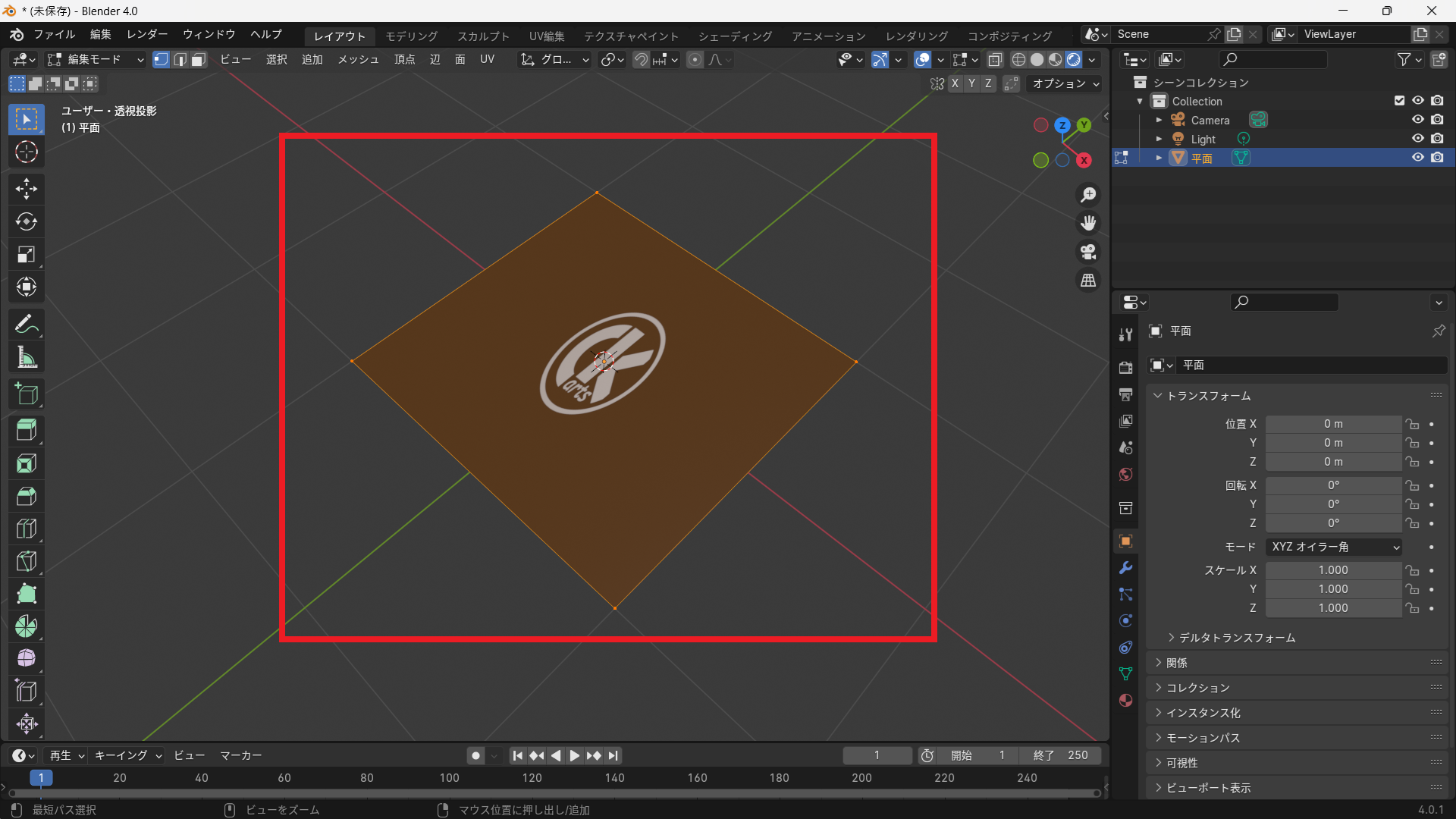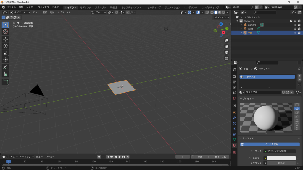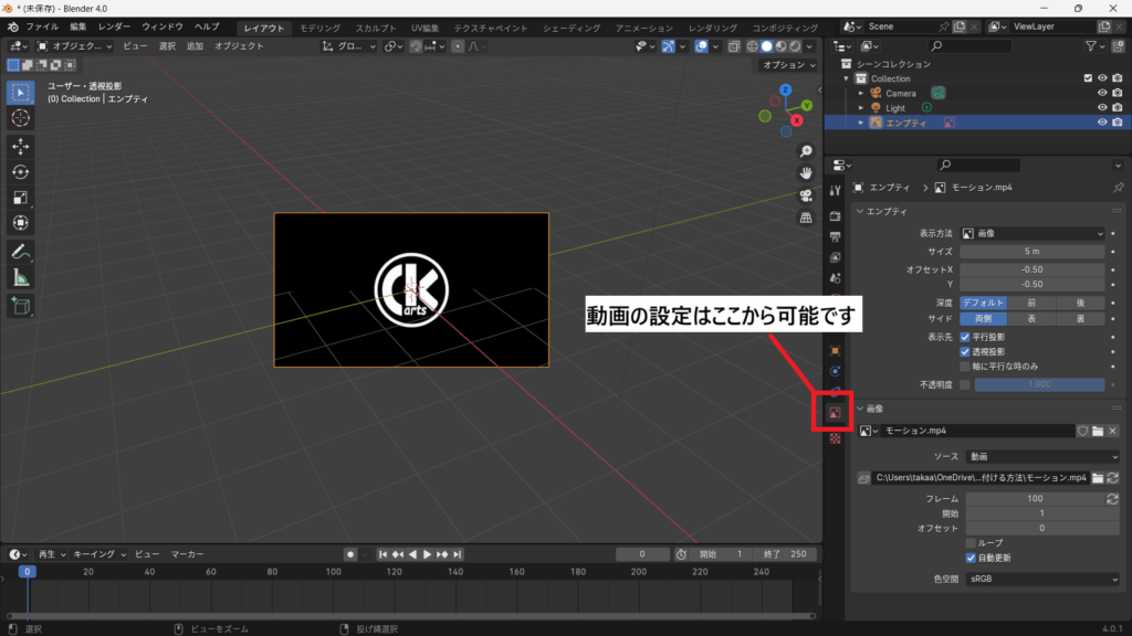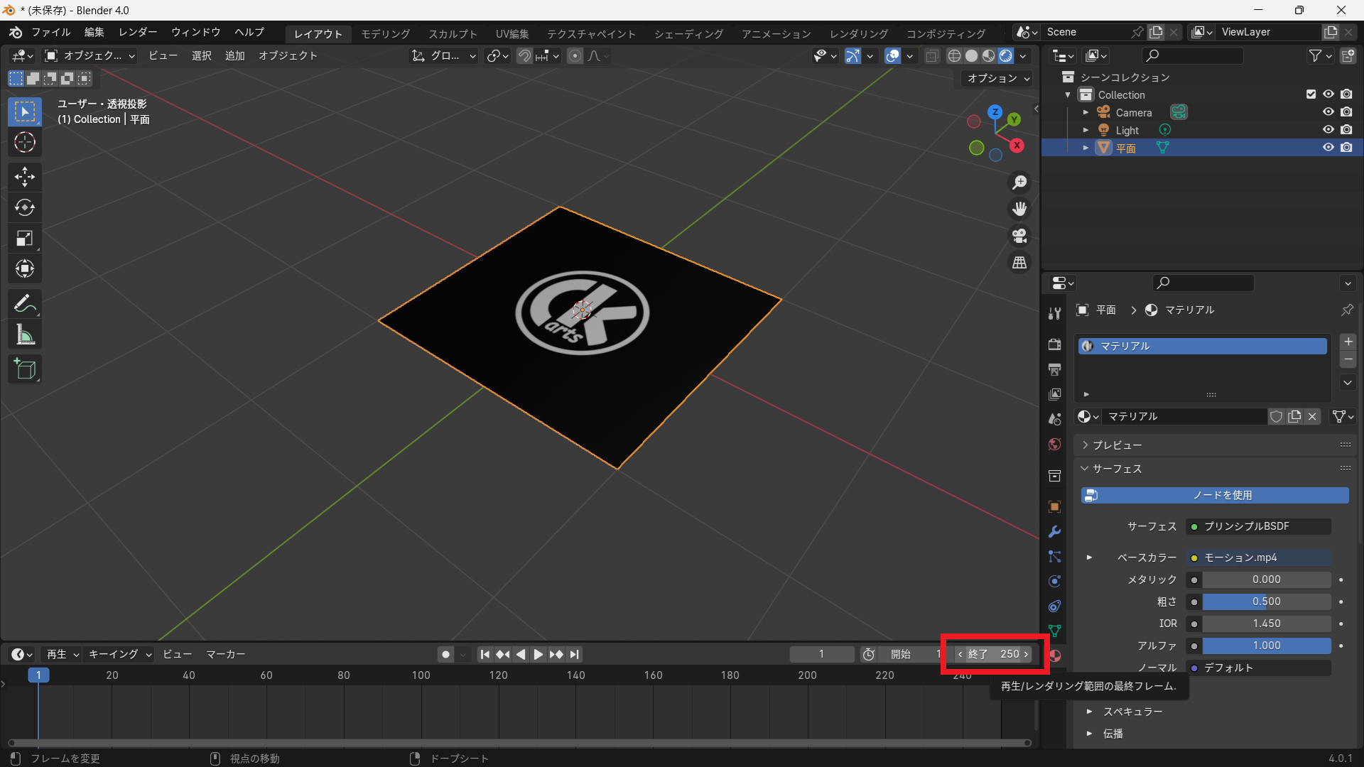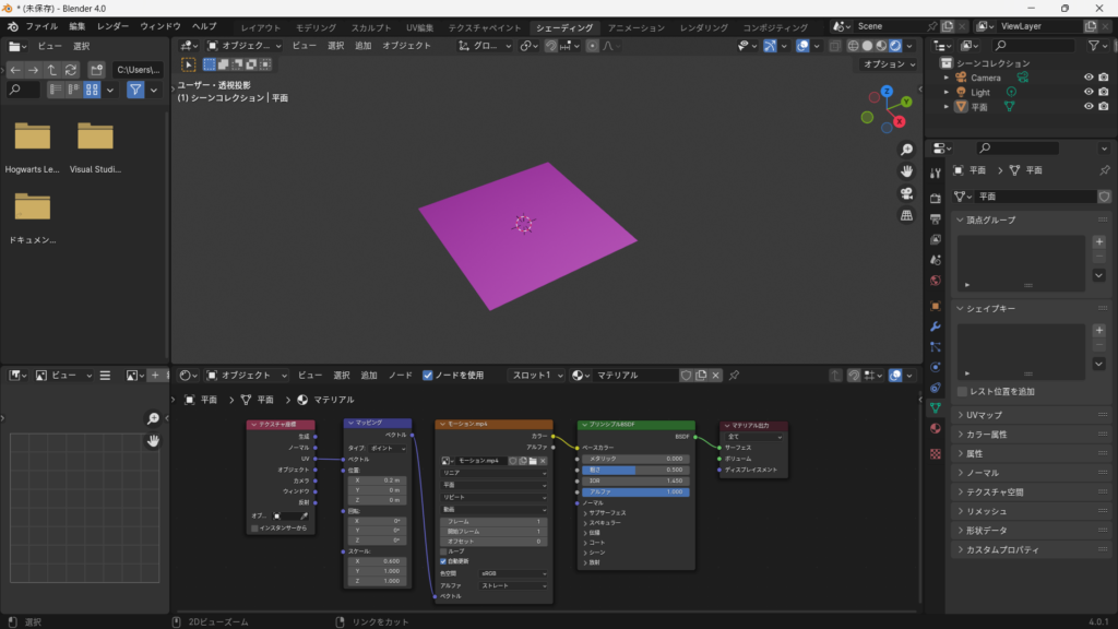 動画を選択すると、動画テクスチャが設定された平面が作成されるため、