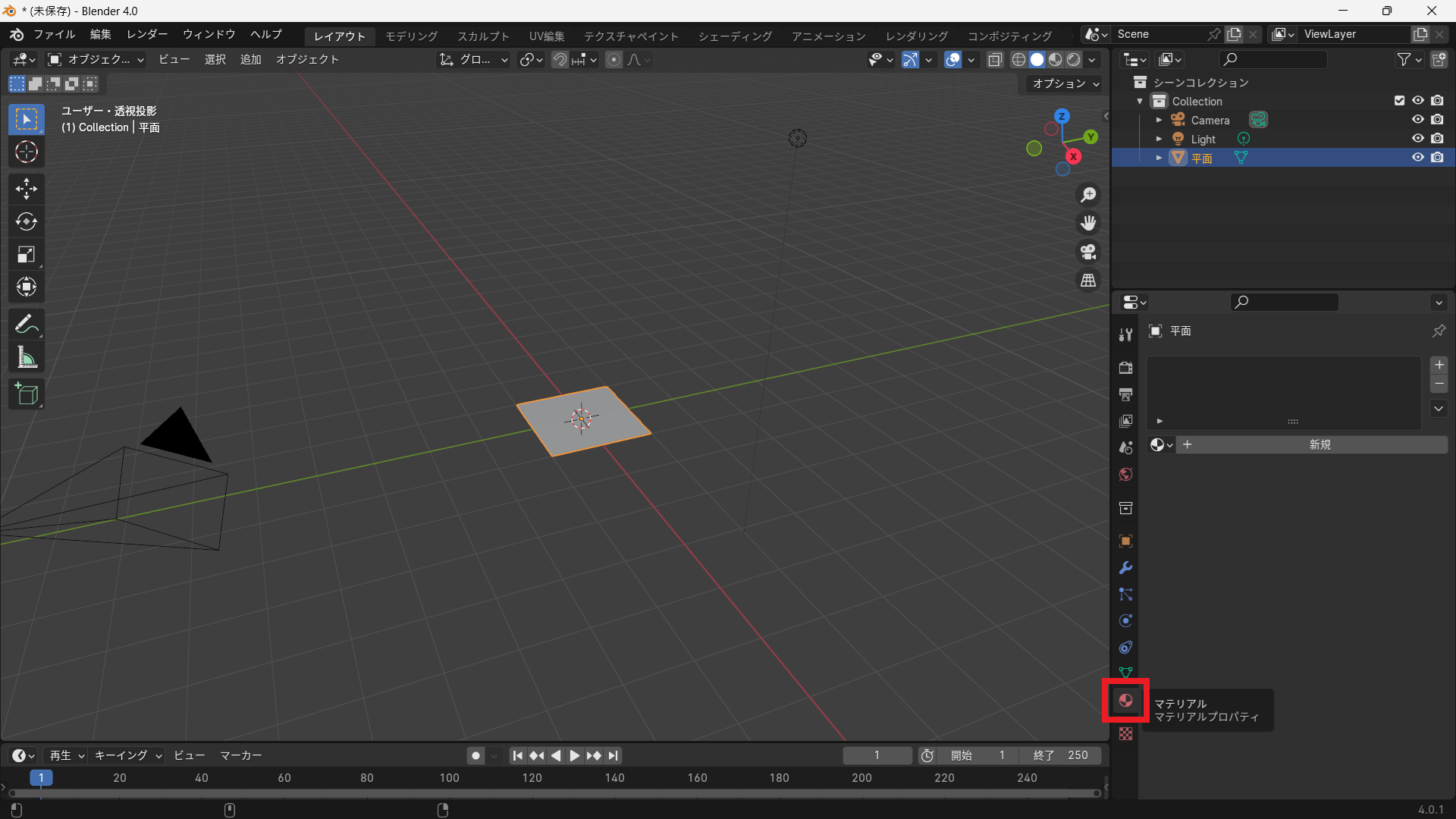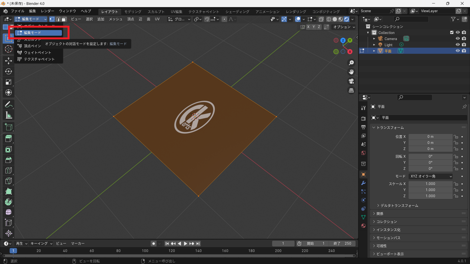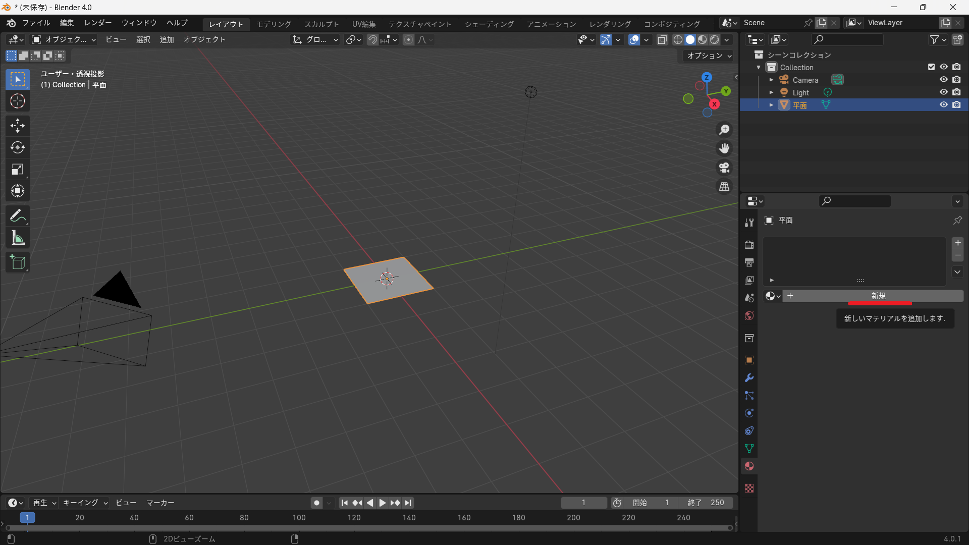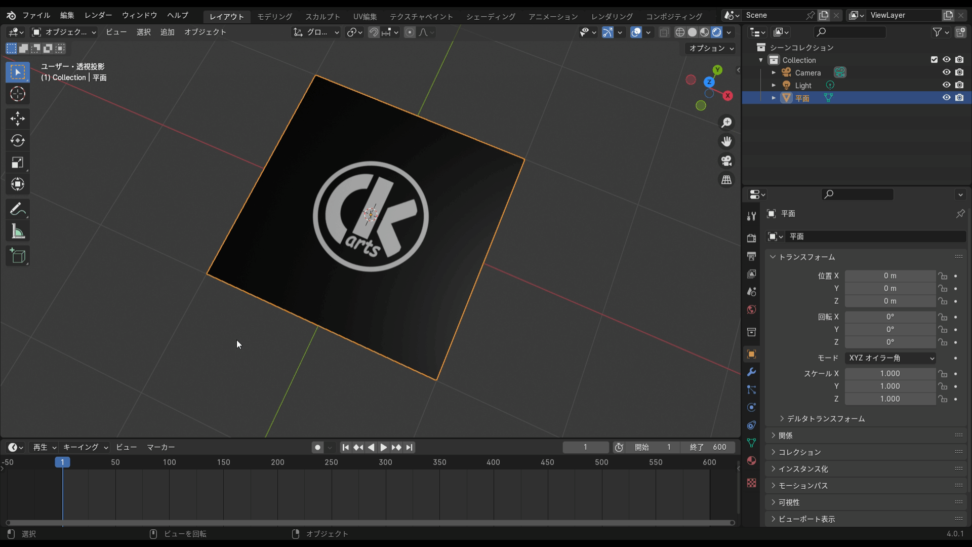 動画を選択すると、動画テクスチャが設定された平面が作成されるため、