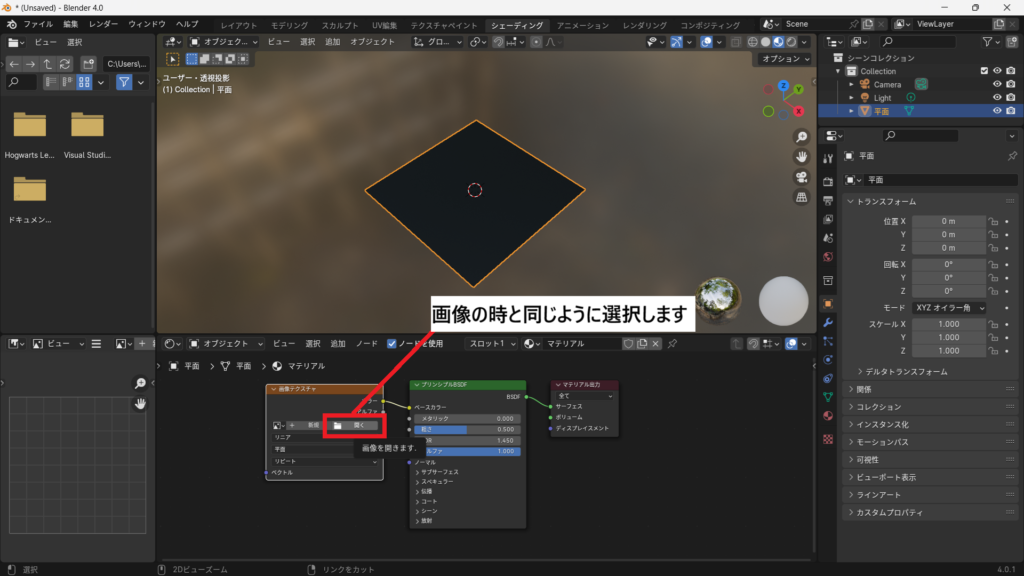 - 画像テクスチャ 内の「開く」から貼りたい画像を選択