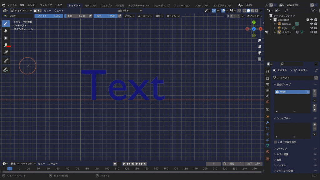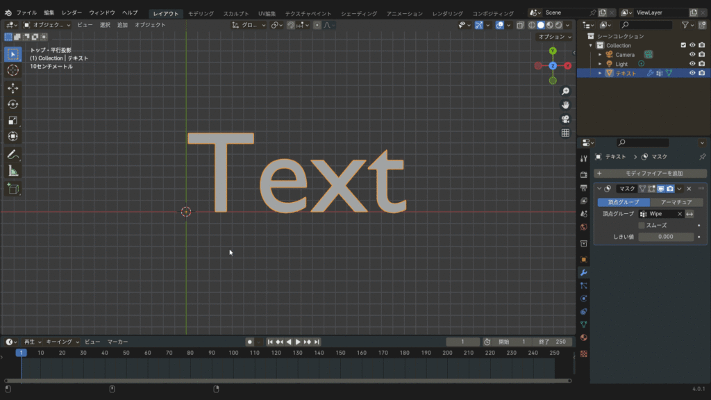 Blenderでウェイトペイントを使った文字ワイプ表示の作り方