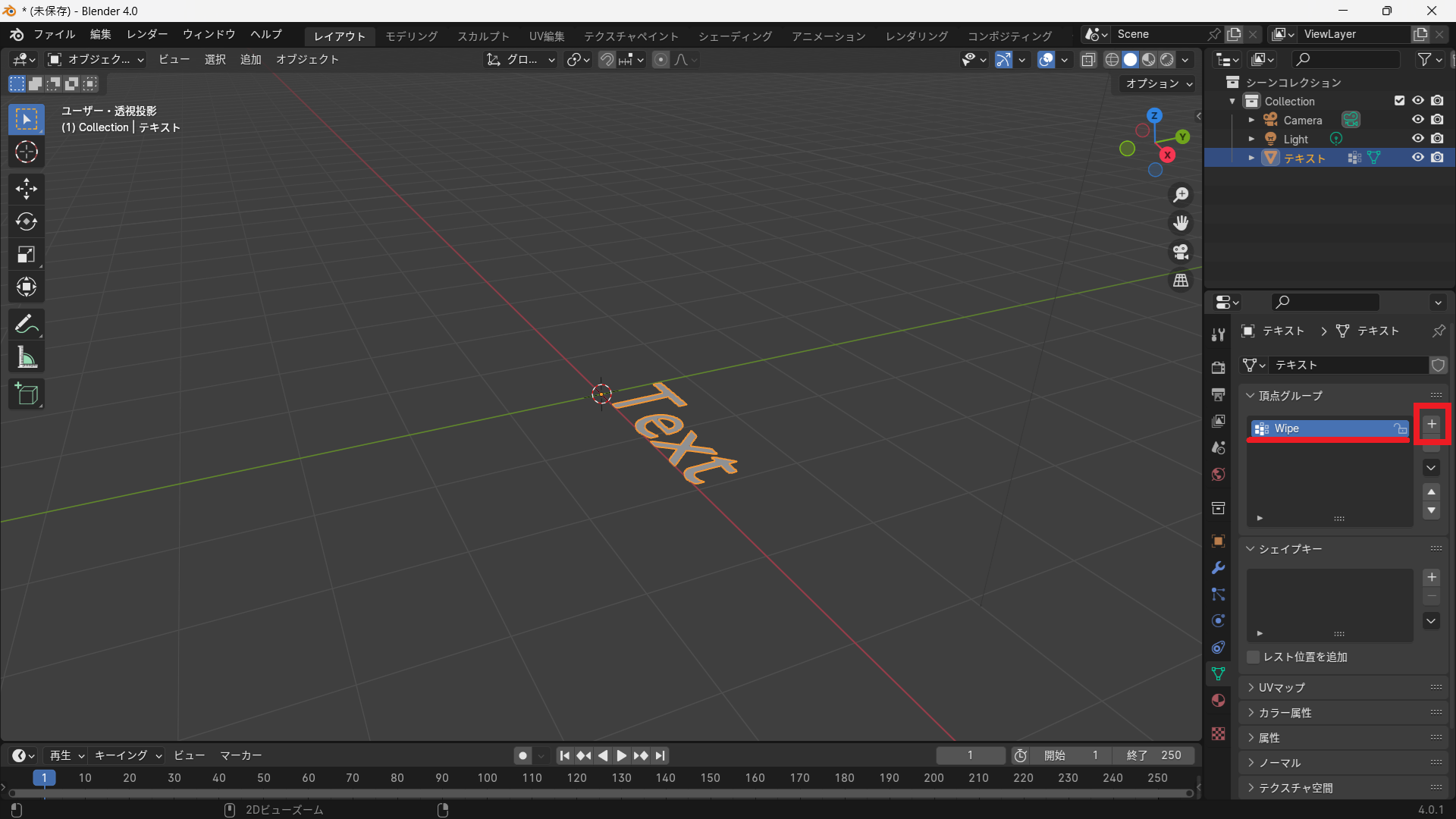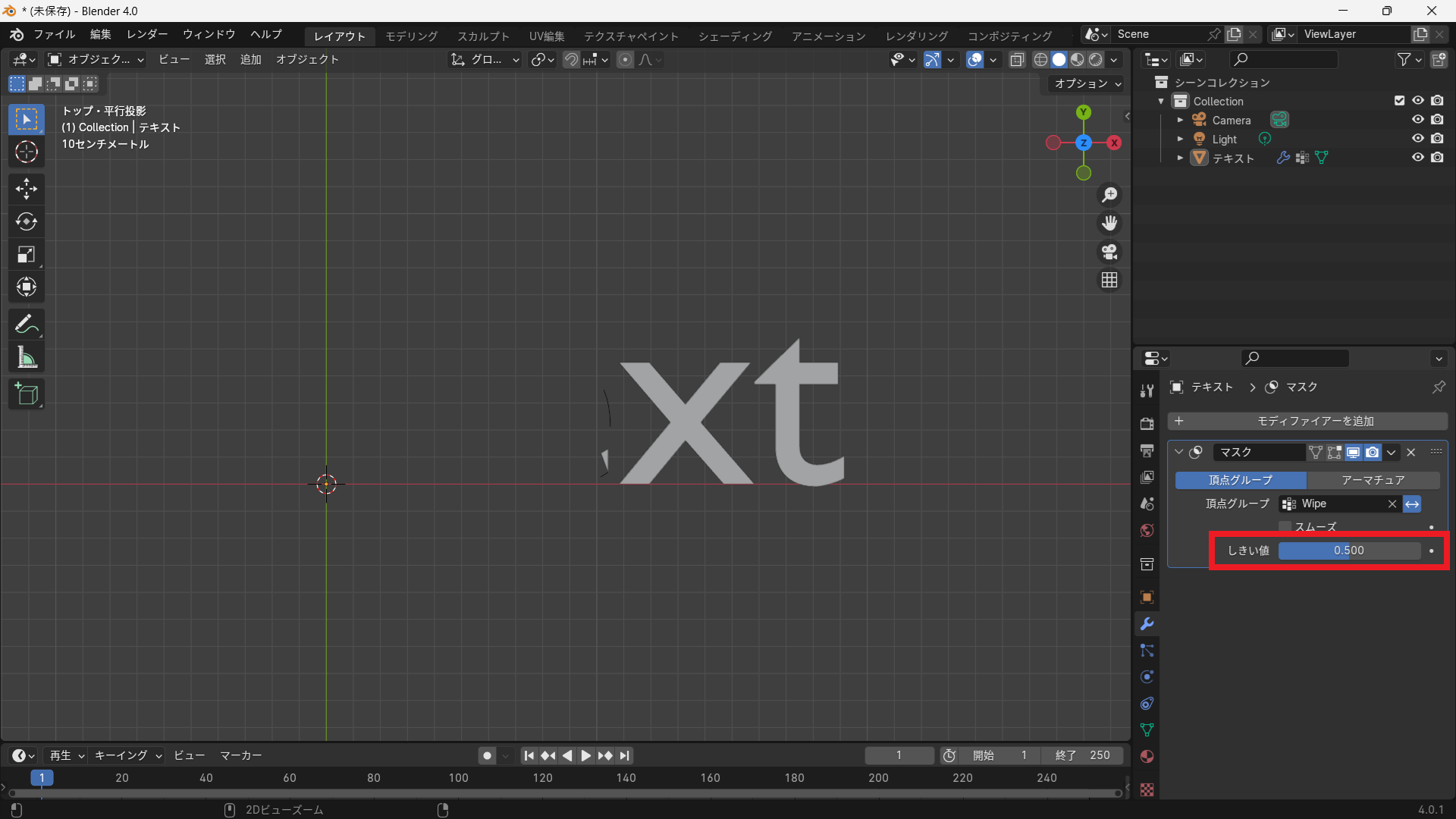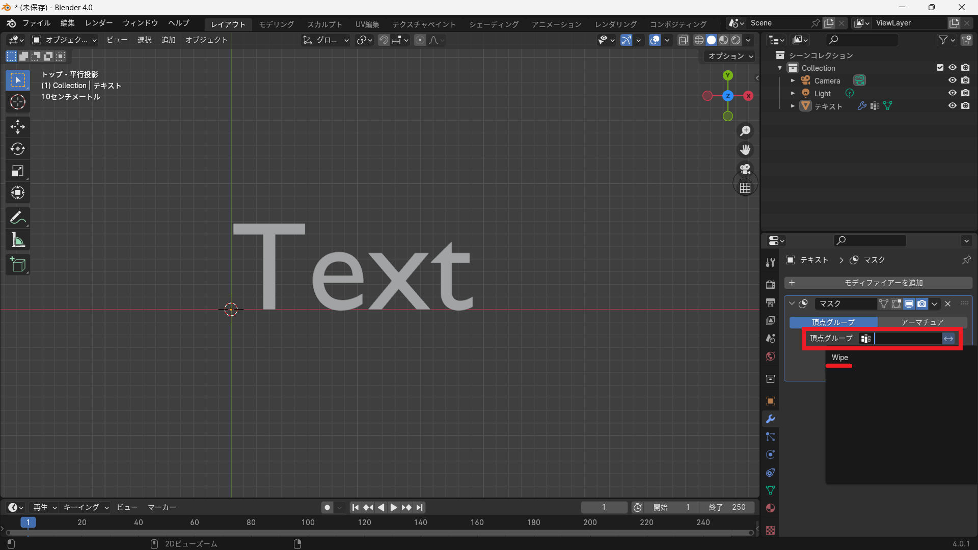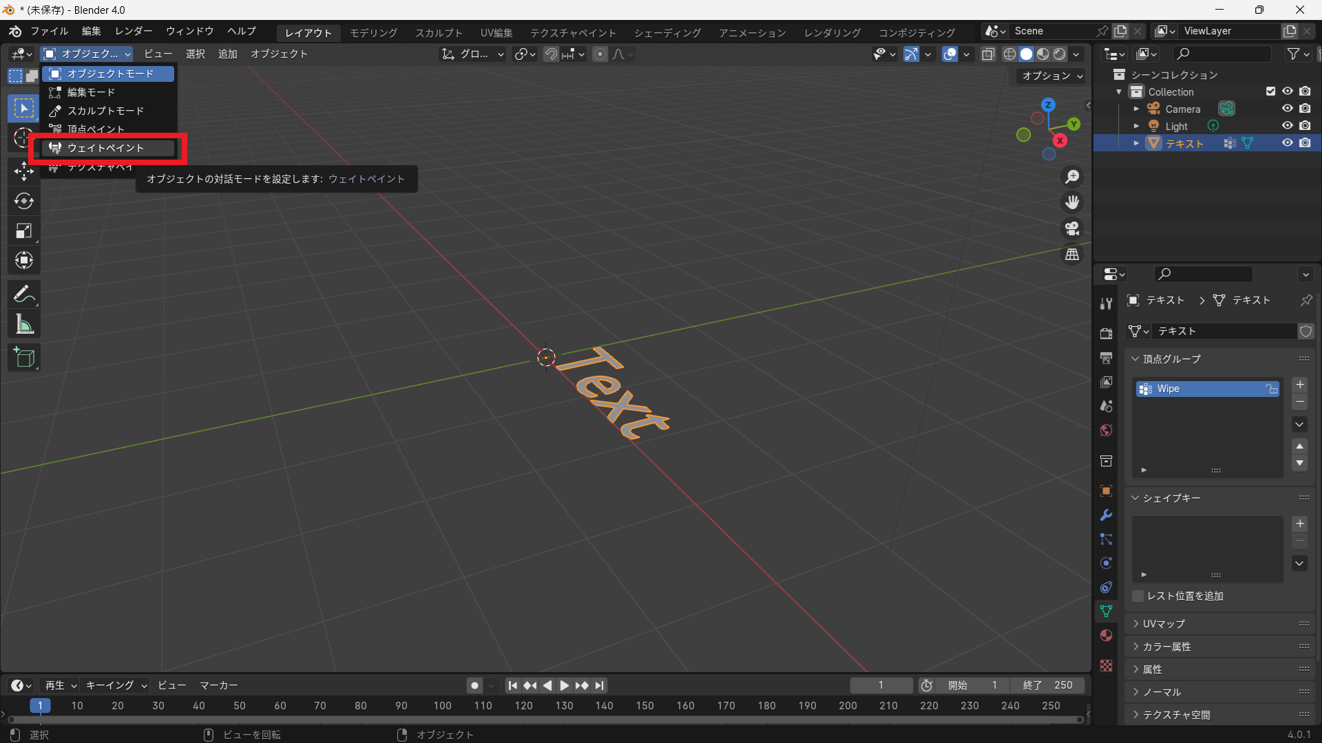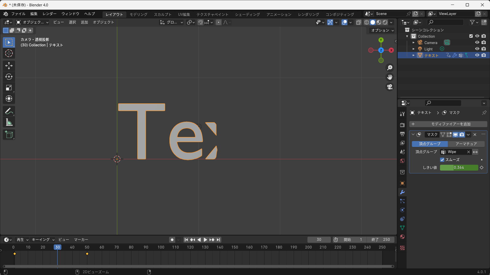 Blenderでウェイトペイントを使った文字ワイプ表示の作り方